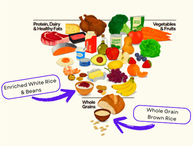 The 2025-2030 edition debuts a new twist on the old food pyramid focusing on “real food” which features rice not once, but twice under both the whole grains and healthy proteins category. Through USA Rice’s advocacy over the last four years, grains continue to be an important pillar of a healthy diet recommended in the DGA, and rice is explicitly acknowledged as a preferred grain choice. The continued inclusion of grains demonstrates a strong and well-documented body of scientific evidence highlighting the essential nutrients rice and grains provide for all life stages, their ability to drive consumption of other healthy foods, and their accessibility and affordability.